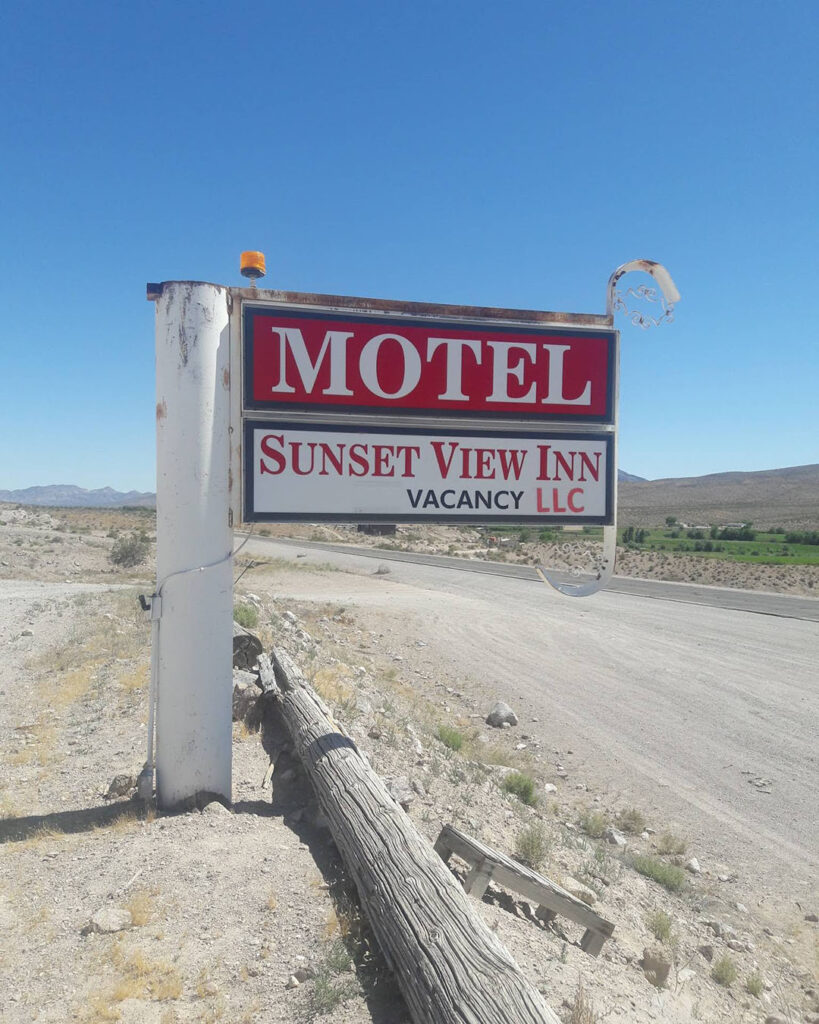 In de infosectie van de Facebookpagina ‘Tennis Plus’ vinden we een adres en een telefoonnummer. Gegevens die voor elke gebruiker van het platform zichtbaar zijn. Een snelle zoekopdracht op Google leert ons dat deze gegevens toebehoren aan Sunset View Inn LLC, een motel in Alamo, een klein stadje in de woestijn van Nevada, Verenigde Staten.